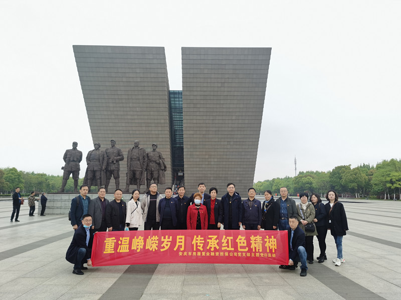 4月25日,安慶市房屋置業(yè)融資擔(dān)保公司黨支部組織全體黨員到渡江戰(zhàn)役紀(jì)念館,把黨史學(xué)習(xí)教育的課堂搬到這里,開展“重溫崢嶸歲月、傳承紅色精神”主題黨日活動。渡江戰(zhàn)役紀(jì)念館坐落在巢湖之濱,以基本展陳《百萬雄師過大江》為主線,共展出珍貴歷史照片、文物、油畫、雕塑2500余件,再現(xiàn)了革命艱難歷程、軍民團結(jié)一心的恢宏篇章。通過一件件歷史文物、一幅幅革命影像,為我們再現(xiàn)了軍民奮勇渡江作戰(zhàn)的壯闊畫面。活動期間,再次重溫了入黨誓詞,部分黨員還分別進行了戰(zhàn)役介紹、戰(zhàn)役中的小故事、觀后感活動。不忘歷史,開創(chuàng)未來,通過追尋渡江戰(zhàn)役英烈們的足跡,牢記革命先烈浴血奮戰(zhàn)、不怕犧牲的歷史,感悟初心使命,汲取奮斗力量,為推進置業(yè)擔(dān)保國有企業(yè)改革發(fā)展開拓新局面。活動還邀請了局紀(jì)檢組、機關(guān)黨委、企指科和股權(quán)單位相關(guān)負責(zé)人參加。